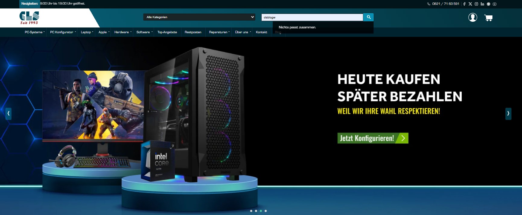 CLS Computer bietet einen erstklassigen Service für alles rund um Computer, PC-Hardware, Laptops und Notebooks. Mit unserem PC-Konfigurator können Sie Ihren Gaming-PC oder Office-PC ganz nach Ihren Wünschen zusammenstellen. Notebooks und Laptops können Sie ebenfalls bequem konfigurieren und kaufen.