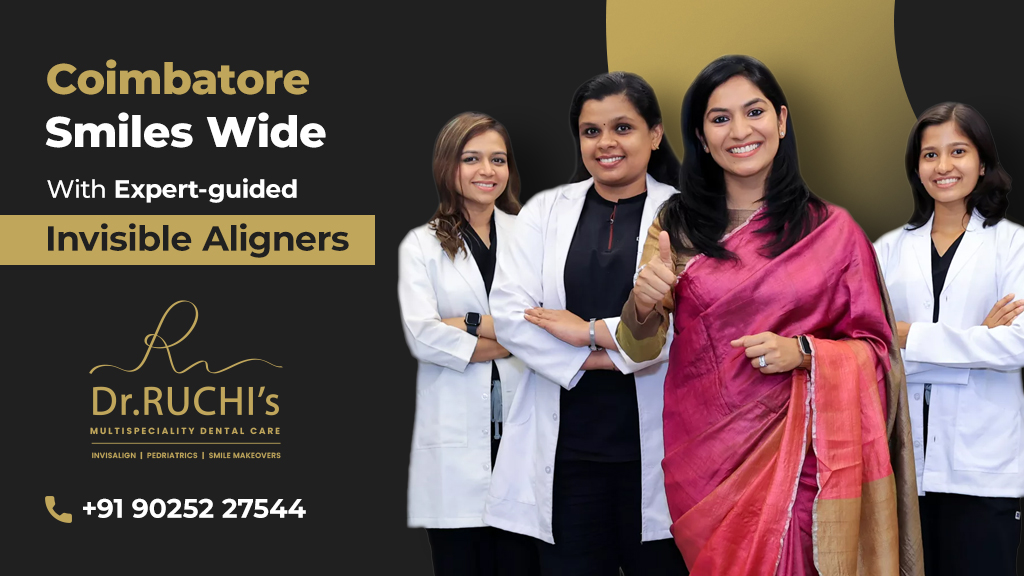 Dr. Ruchi's Multispeciality Dental Care is the best dental clinic in Coimbatore specialized in high-class painless dentistry. Our team of experienced dentists and dental specialists are committed to provide the finest quality of care. We offer wide range of dental treatments, catering to diverse needs of patients. Whether it's a routine dental check-up, Orthodontics Braces, Invisible/Invisalign Braces, Root canal, Teeth cleaning, Ceramic crown, Child dentistry, Cosmetic dentistry or dental implants. Dr. Ruchi's dental hospital provides top-notch services with the utmost care and precision. Our dentists in Coimbatore uses advanced technology and follows strict hygiene protocols, ensuring a safe and comfortable experience for every patients.