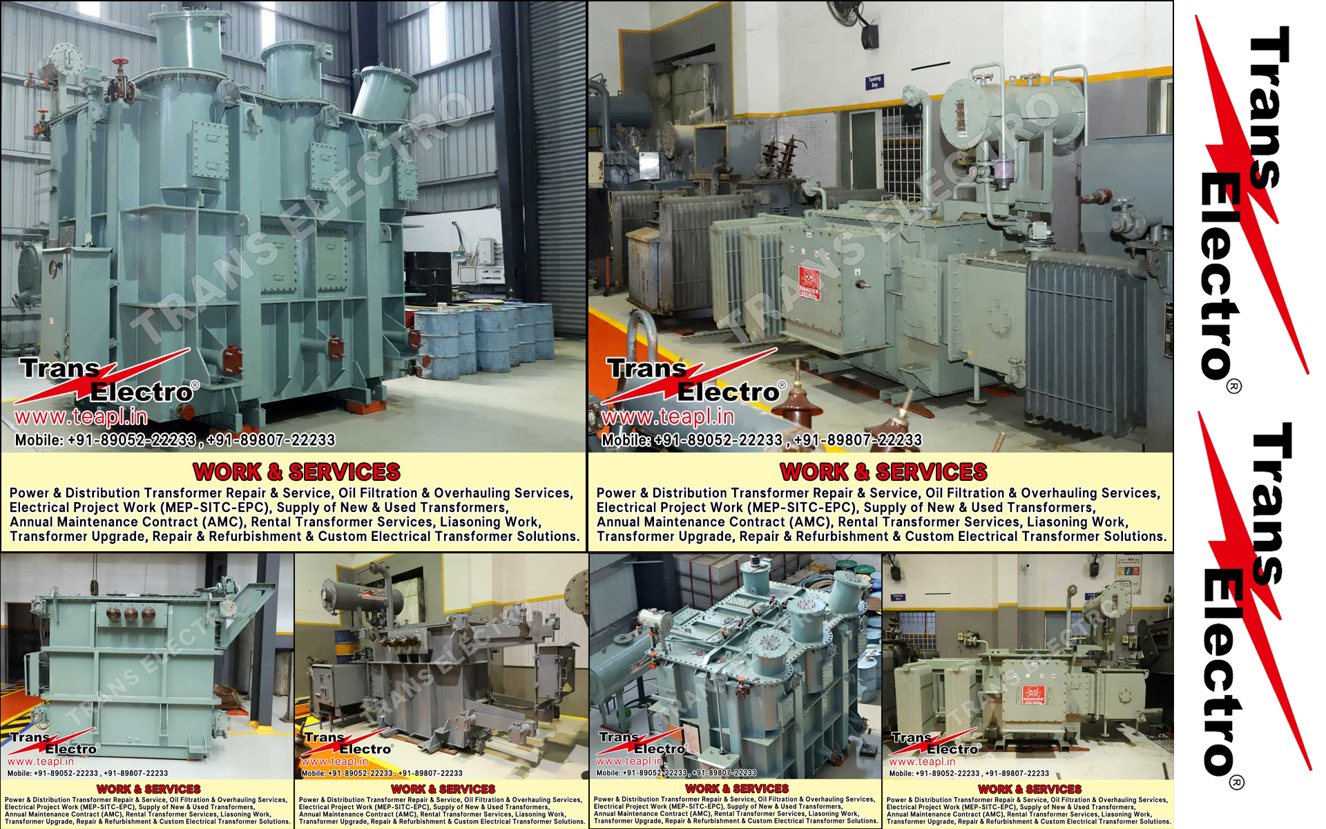 Trans Electro Services includes Power & Distribution Transformer Repair & Service company, Oil Filtration & Overhauling Services company, Electrical Project Work (MEP-SITC-EPC) company, Supply of New & Used Transformers company, Annual Maintenance Contract (AMC) company, Rental Transformer Services company, Liasoning Work company, distribution transformer repair services company, HT transformer repair services company, LT transformer repair services company, transformer AMC services company, transformer breakdown service company, transformer maintenance service company, transformer testing and commissioning company, industrial transformer servicing & Repairs company, on-site transformer repair company, Transformer EPC, MEP, SITC Project company, transformer oil filtration service company, transformer oil purification service company, transformer overhauling services company, transformer oil dehydration service company, transformer oil vacuum filtration company, transformer Mobile on-site filtration company, transformer refurbishment company, electrical transformer oil testing company, NABL-approved transformer oil testing company, industrial transformer oil filtration company, electrical EPC contractor company, MEP electrical services company, SITC electrical contractor company, electrical project work company, turnkey electrical transformer projects company, buy old power transformer company, sell used distribution transformer company, new power transformer manufacturers company, transformer trading company, backup power transformer rental service company, transformer hire services company, power transformer on rent company, Power distribution transformer rental service company, power transformer liaisoning services company, substation liaisoning services company, electrical liaisoning services company, transformer liaisoning work company in India Gujarat Valsad +91-8905222233, +91-8980722233 https://www.teapl.in